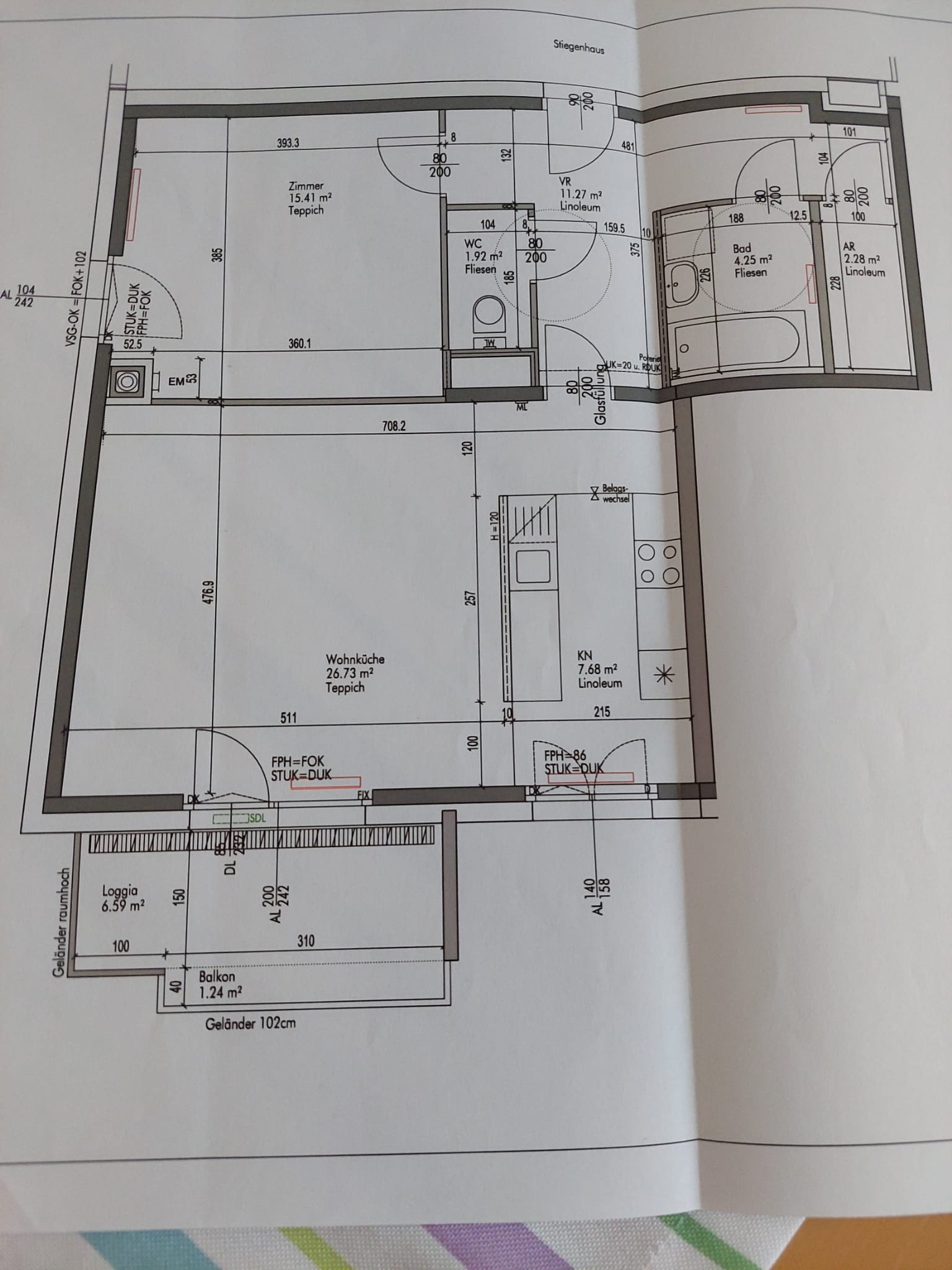 - Vorraum, Bad, WC, Wohnküche, 1 Zimmer, Abstellraum, Loggia, Kellerabteil